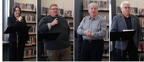 On Tuesday afternoon, December 19, 2023, I attended a special event at the Parry Sound Public Library. The gathering was in recognition and appreciation for a grant from the Northern Ontario Heritage Funds Corporation (NOHFC) and The Town of Parry Sound covering the cost of three new rooftop HVAC units. NOHFC contributed 75% of the cost, and the Town of Parry Sound contributed $7,702 towards the remaining cost in this year’s capital budget. On hand were several speakers including our MPP, Graydon Smith, Mayor Jamie McGarvey, library CEO, Selena Martens, and library board Chair, Tom Lundy. Several area elected officials were also on hand along with members of the library board of management. Gratitude and appreciation were expressed for the funds needed to replace the old HVAC units which were well past their time and service. (In Photo: Library CEO Selena Martens, MPP Graydon Smith, Mayor Jamie McGarvey, Library Board Chair Tom Lundy)